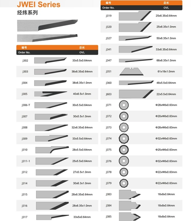 JWEI oscillating tungsten carbide blades are manufactured from high-quality tungsten steel raw materials, offering high cutting precision, stable performance, and long service life. These blades are designed for JWEI CNC cutting machines and are widely used as JWEI blade replacements in various industrial cutting applications.