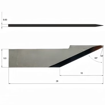 Atom 01030782 tungsten steel vibrating blade, suitable for Atom cutting machine, blade height 28mm, thickness 0.63mm, blade angle 25°-10°, maximum cutting depth 10mm. Suitable for cutting leather, shoe materials and various synthetic materials, sharp cutting, wear-resistant and durable.