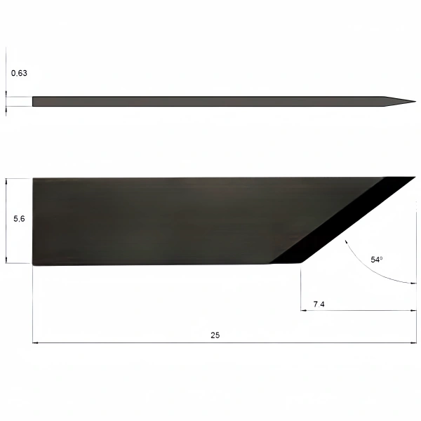 With a 54° cutting angle and a maximum cutting depth of 7.4 mm, these blades are ideal for cutting canvas, foam board, folding carton, gasket material, magnetic foil, paper, polyester fabric, PVC, reflective vinyl, and self-adhesive vinyl.