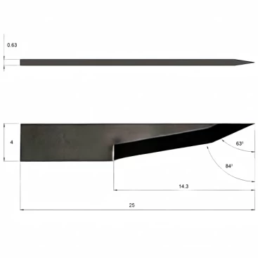 Atom 01033568-01039906 Flashcut HV1600 Carbide Oscillating Blade is compatible with ATOM cutting machines and has a cutting angle of 65°, a blade height of 25mm, a thickness of 0.63mm, and a maximum cutting depth of 14.30mm. This blade has a flat design and is suitable for a variety of materials including corrugated cardboard, corrugated plastic, felt, foam board, folding carton, magnetic film, polyester fabric and rubber.