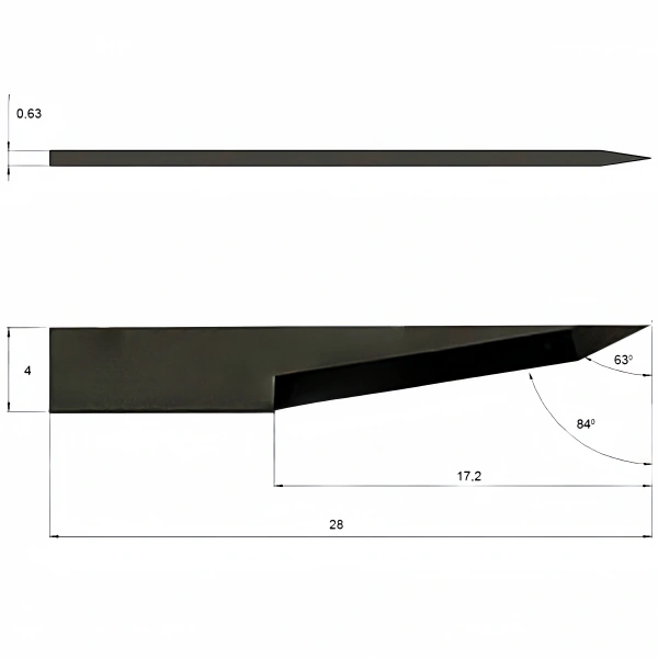 Suitable for Atom automatic cutting machine. The blade height is 28mm, the thickness is 0.63mm, the angle is 63°/84°, and the maximum cutting depth is 17.2mm. It is suitable for cutting corrugated cardboard, foam board, felt, rubber and other materials. The blade is sharp, the cutting is efficient and accurate, and it is suitable for a variety of industrial applications.