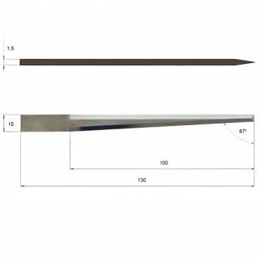 ATOM 01040077F cutting blade for ATOM oscillating cutters. With a cutting angle of 87°, a blade height of 130.00 mm and a blade thickness of 1.50 mm, it can easily handle cutting tasks up to a depth of 100.00 mm. The blade width is 10.00 mm, suitable for precise cutting of foam boards, packaging materials and various synthetic materials. The flat 1.5 mm blade mounting design ensures stable cutting results