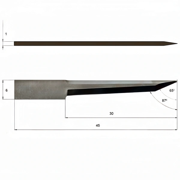 Atom original 01043086 HV1600 tungsten steel vibrating blade, suitable for Flashcut automatic cutting machine, blade angle 65°/87°, maximum cutting depth 30mm, flat handle 1mm installation, suitable for cutting foam, rubber, synthetic materials and packaging materials.