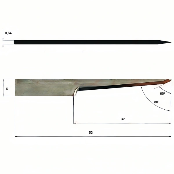 Atom 45485/01045485 tungsten steel vibrating blade, angle 5°-25°-10°, maximum cutting depth 32mm, thickness 0.64mm, suitable for cutting rubber materials, compatible with Atom automated cutting equipment.
