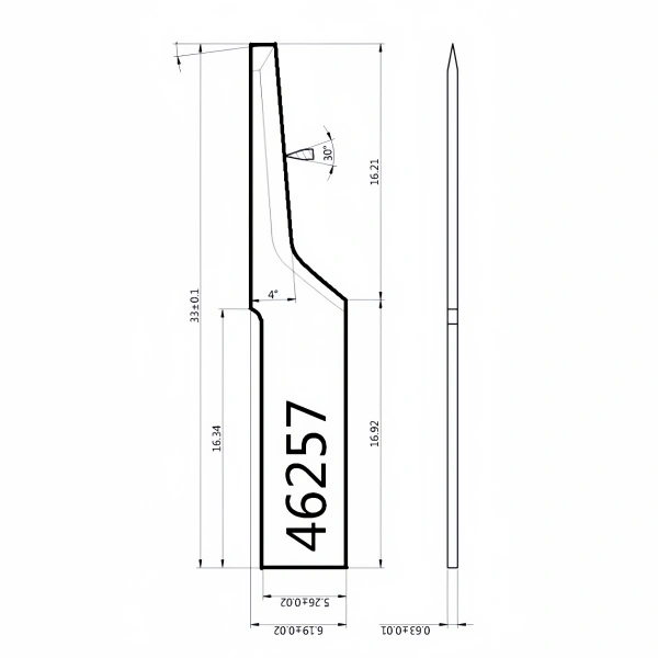 Atom 01046257 tungsten steel vibrating blade, 33mm blade height, 0.64mm thickness, maximum cutting depth 11mm, suitable for carbon fiber, soles and leather materials, compatible with ATOM automatic cutting machine.