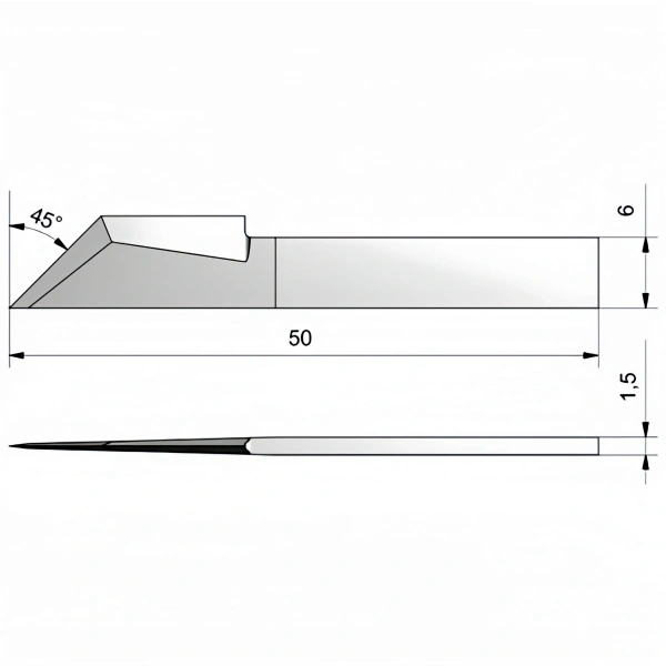 The Blackman & White BW46 pull knife blade is a flat cutting tool made of high-strength tungsten carbide material, suitable for a variety of automated CNC cutting systems. The blade adopts a 45° + 90° compound cutting angle design, combined with a pull knife, to provide smooth and clear cutting results, especially suitable for flexible and semi-rigid materials up to 20 mm thick.