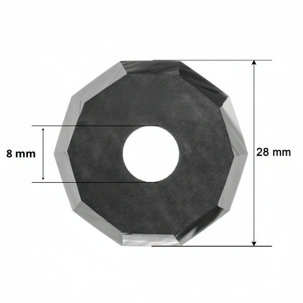 The Bullmer PremiumCut B51 cutting blade is made of highly wear-resistant tungsten carbide, with a blade height of 28.00 mm, a thickness of 0.60 mm, a cutting angle of 36°, and a maximum cutting depth of 5.00 mm. It is suitable for a variety of materials, including aramid fibers, carbon fibers, felts, fiberglass, nonwovens, nylon fabrics, polyester fabrics and various textiles. The blade has an aperture of 8 mm and is compatible with a variety of cutting machines, including Bullmer B51, Zünd Z51, Gerber MCT R51, etc.