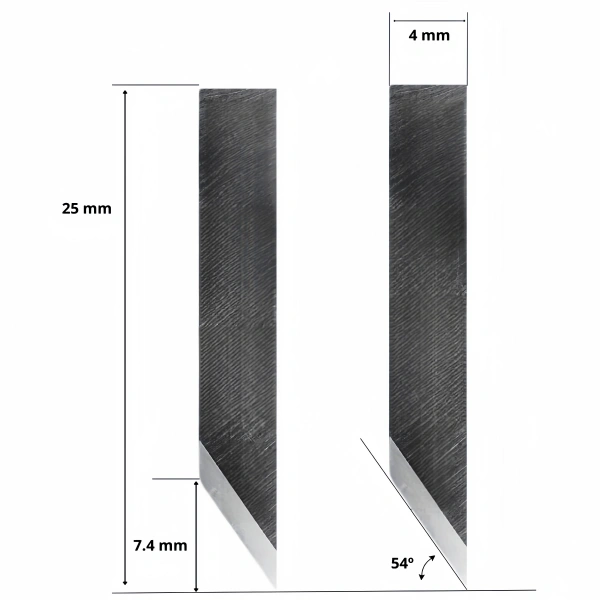 The COLEX T00418 is a durable tungsten carbide oscillating blade suitable for precise cutting of materials such as canvas, foam board, PVC and vinyl film. With a 54° angle and a maximum cutting depth of 7.4 mm, it can achieve clean and accurate cuts. This versatile blade is compatible with many brands of cutting machines