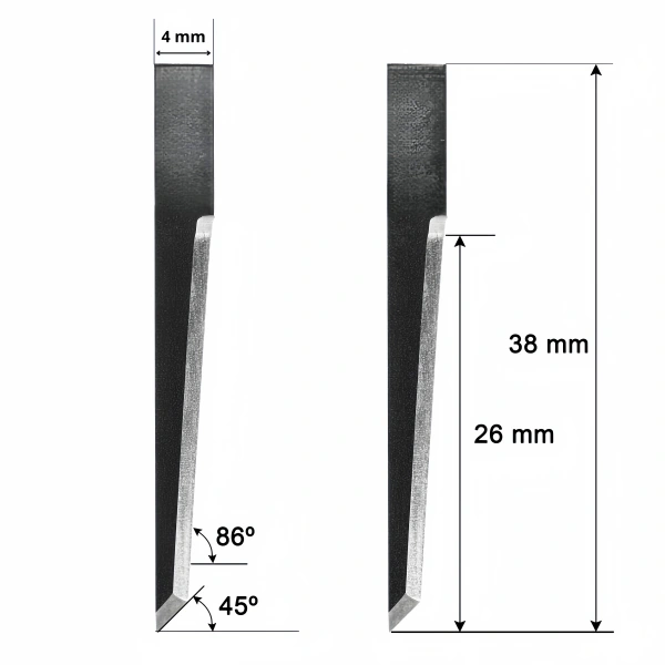 COLEX blade, T00425 knife, oscillating blade, tungsten carbide blade, dual angle blade, 45 degree blade, 86 degree blade, compatible with Esko, Summa, iEcho, Gerber, Zund, 38mm height blade