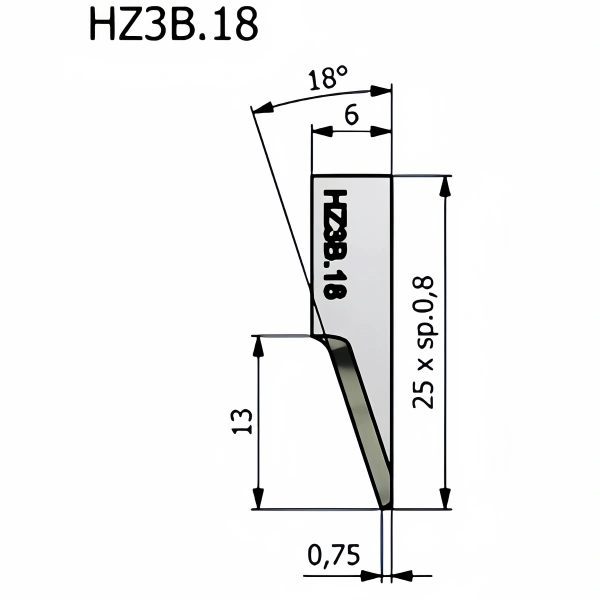 The Comelz HZ3B.18 tungsten steel vibrating blade is specially designed for the Comelz automatic cutting machine. It is made of high-quality tungsten steel to ensure that the blade is durable and accurate. The blade is 25mm long, 6mm high, 0.8mm thick, and has a cutting angle of 35°, which is suitable for efficient cutting of a variety of industrial materials.
