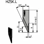 The HZ5K.C blade has a length of 23.5mm, a height of 6mm, a thickness of 1.0mm, and a blade angle of 18°. It is compatible with a variety of Comelz automated vibrating blade heads for efficient cutting of leather, textiles, synthetic materials, etc.