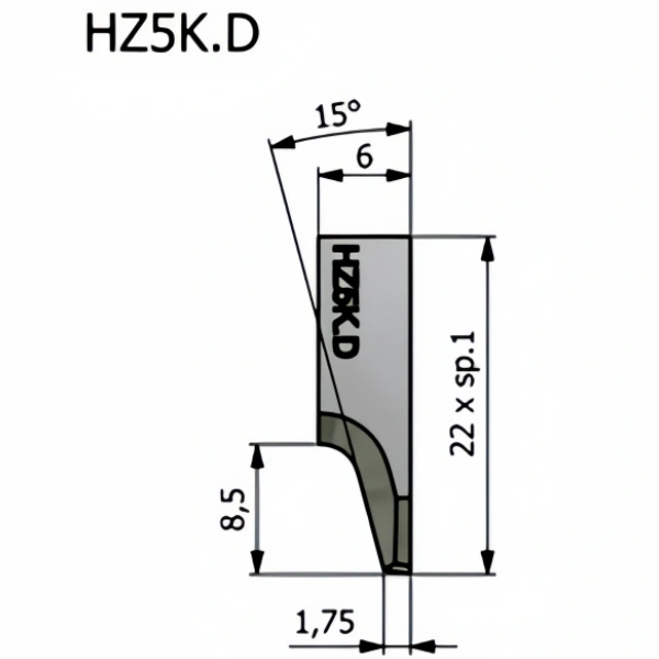 The Comelz HZ5K.D tungsten steel oscillating blade is suitable for use with Comelz automatic cutting machines. It has a length of 22 mm, a height of 6 mm, a thickness of 1.0 mm, and a cutting angle of 30°. This blade is suitable for use with a wide range of materials and has excellent durability and cutting performance.