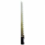 Single serrated oscillating knife blade for working with honeycomb, fluted cardboard, and tough paper materials.