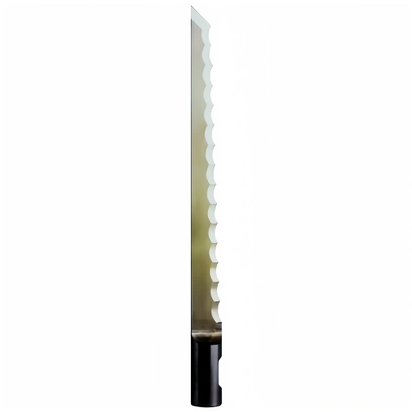 Ecocam W60 round handle wave cutting blade, designed for Ecocam cutting machines and cutting plotters. The blade is made of highly durable carbide material, suitable for cutting materials such as corrugated cardboard and honeycomb cardboard. The blade is 76mm high, with a maximum cutting depth of 55mm, and is equipped with a 6mm round handle for quick replacement and installation.