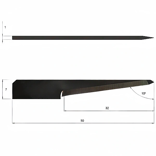 Elitron 135522 tungsten steel vibrating blade, suitable for Elitron cutting machine, blade height 50mm, thickness 1mm, maximum cutting depth 32mm. Suitable for cutting corrugated cardboard, foam board, insulation pad, sharp and durable, easy to install.