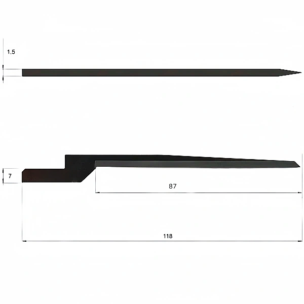 Elitron 135600 tungsten steel oscillating blade is designed for precise cutting of foam board and polyethylene foam. The blade height is 118mm, the width is 12mm, the thickness is 1.5mm, and the maximum cutting depth is suitable for various applications. The 0° angle and flat 1.5mm handle ensure smooth and efficient cutting performance. The blade is easy to replace, making it an ideal tool for precision cutting.