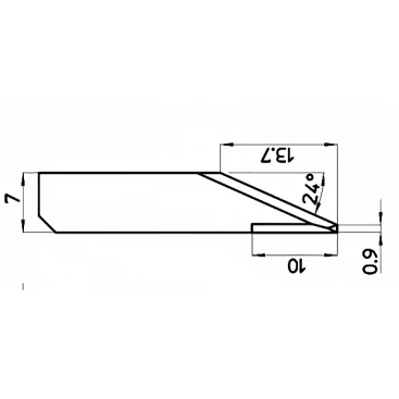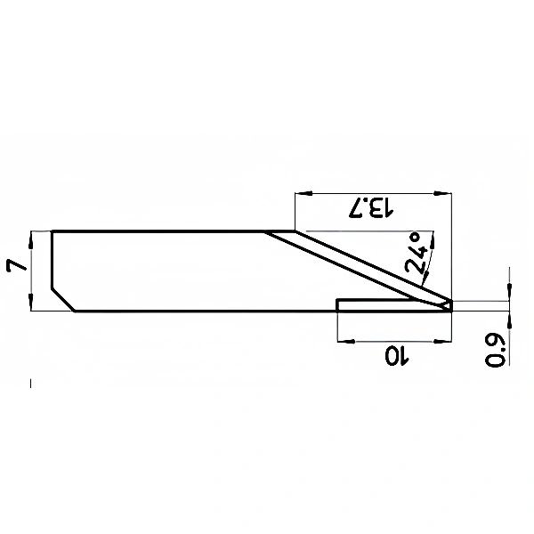 Elitron 48836 tungsten carbide vibrating blade, 35mm long, 7mm high, 1.0mm thick, 24° cutting angle, suitable for Elitron automatic cutting machine, precise cutting of a variety of materials.