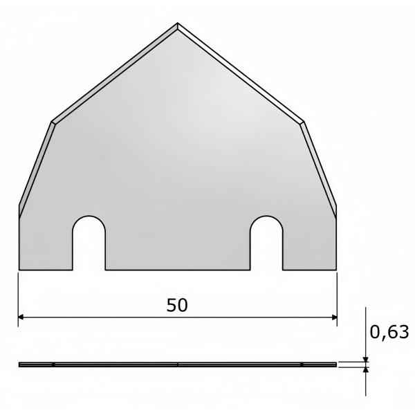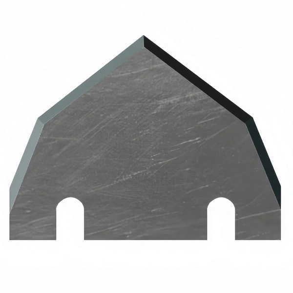 Double arrow-shaped blade. Superb performance in materials like Kappa and foamed core board. Works with fluted core boards and triple wall corrugated. Made from a special Tungsten Carbide alloy to extend lifetime