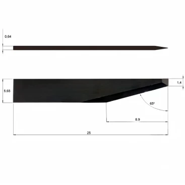 This blade features a flat-tip, single-edged design with a 65° blade angle and a maximum cutting depth of 8.9 mm. It is suitable for a variety of flexible and semi-rigid materials, including cardboard, rubber, textiles, carbon fiber, leather, foam, and fiberboard, delivering sharp, precise cutting and durable wear.