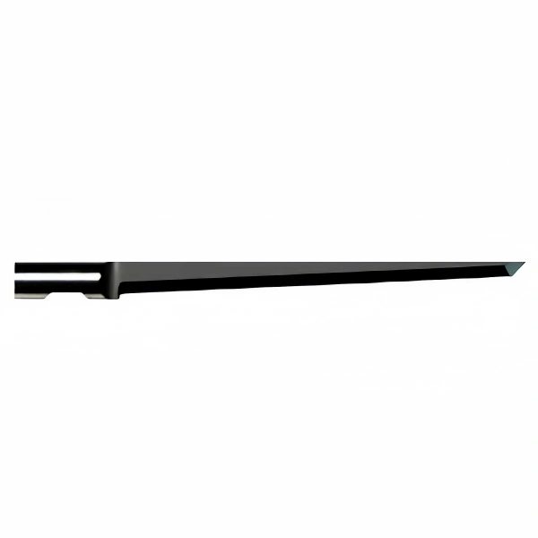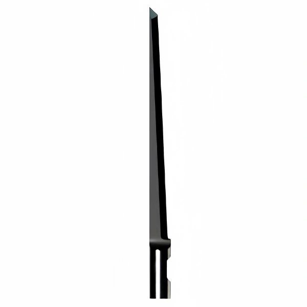 Blade for max. 55mm material thickness. 2.5* cutting angle enables very fine details with little over-cut in foam qualities with good cutting properties. Pointed tip for use with felt underlays