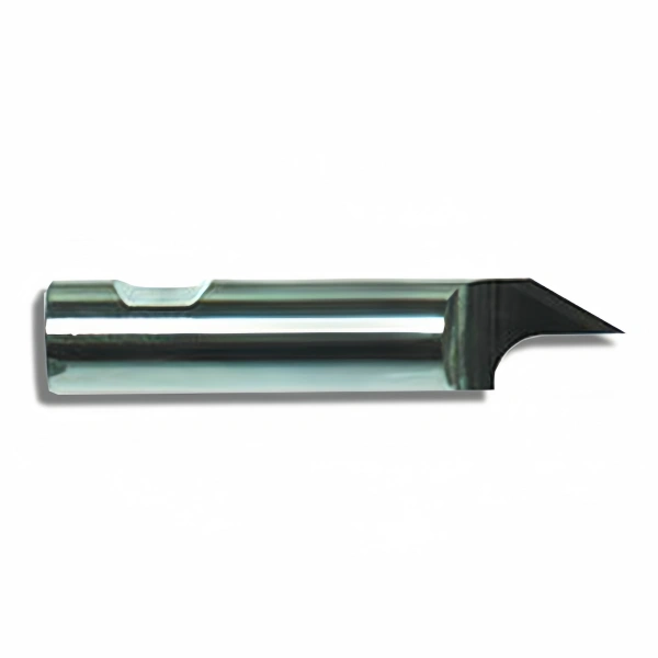 Tungsten carbide blade for thinner flexible or rigid materials such as solid cartons, vinyl, and plastics. 30* cutting angle. Asymmetric knife blade that plows all burrs and waste to one side.