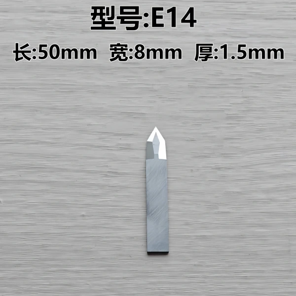 iEcho E14 replacement drag blade, tungsten steel, 45°/90° angle, 1.5mm flat bottom installation, suitable for precise cutting of tarpaulins and carpets.
