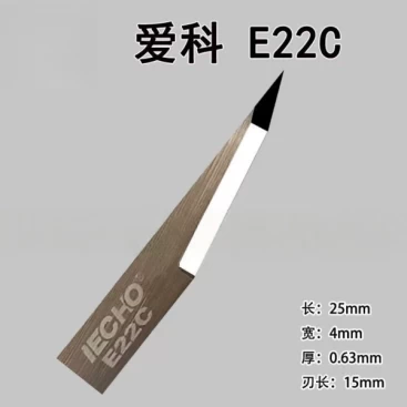 iEcho E22 carbide vibrating blade is suitable for precise cutting of corrugated cardboard, foam board, rubber, magnetic film and other materials. The blade height is 25mm, the width is 4mm, the maximum cutting depth is 14mm, and the cutting angle is 63°/79°, providing efficient and precise cutting effects, and is widely used in the field of industrial cutting.