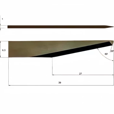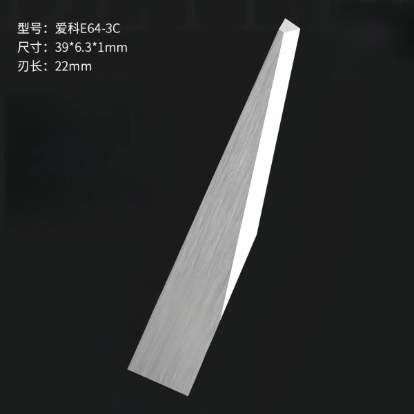 iEcho E64-3 is a high-performance tungsten steel oscillating blade designed for IECHO CNC cutting equipment. It adopts a 20°/80° dual-angle design, combined with a 1mm thick flat blade mounting structure, to ensure high precision and high durability when cutting a variety of industrial materials. The blade supports a maximum cutting depth of 27mm and is suitable for flexible and medium-hard materials such as corrugated cardboard, honeycomb cardboard, PE foam, and packaging paper.