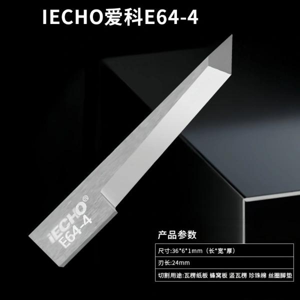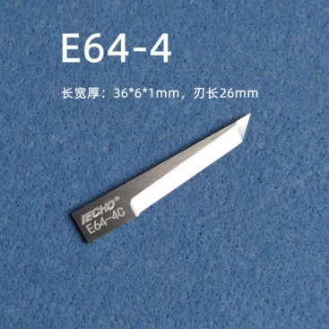 iEcho E64-4 is a high-performance tungsten steel blade compatible with iEcho CNC vibration cutting machine. It adopts 84.5°/46.8° dual angle design, blade thickness is 1.00mm, blade height is 36mm, and supports a maximum cutting depth of 24mm. This blade is suitable for precise cutting of a variety of complex and multi-layered materials, and is widely used in carbon fiber composites, corrugated cardboard, felt, fiberglass, leather and various industrial textiles.