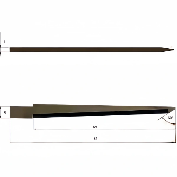 iECHO E64-8 tungsten steel oscillating blade adopts 60° sharp angle design, blade height 81mm, maximum cutting depth up to 69mm, suitable for various flexible and composite materials such as carbon fiber, glass fiber, leather, rubber, etc. Suitable for iECHO CNC cutting machine