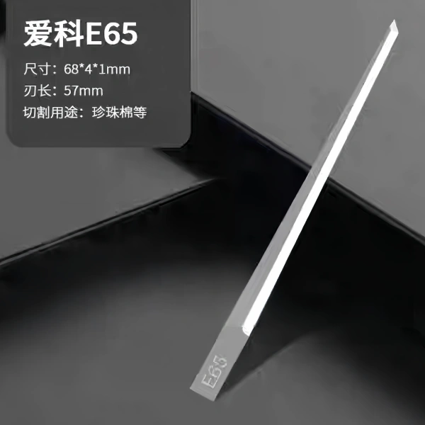iEcho E65 is a tungsten steel vibrating blade designed for iEcho CNC vibrating cutting machine. It adopts 50°/81° dual angle design, blade thickness 1.00mm, blade height 68mm, and supports a maximum cutting depth of 55mm. This blade is suitable for efficient cutting of a variety of medium-thickness and flexible materials, and is widely used in packaging manufacturing, industrial foam processing, corrugated cardboard and rubber products.