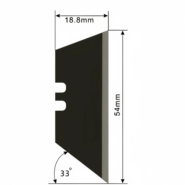 Iecho E73 blade adopts high-strength tungsten carbide, measures 54mm x 18.8mm, thickness 0.63mm, maximum cutting depth 19mm. Designed for corrugated cardboard, corrugated plastic and honeycomb board, compatible with Iecho and JWEI brands