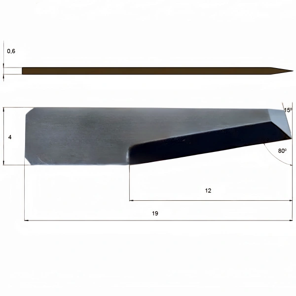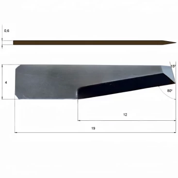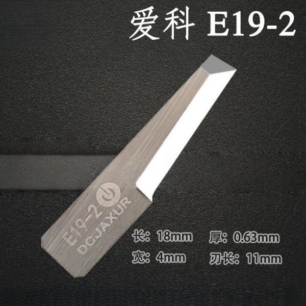 The iEcho E19-2 oscillating blade is made of high-performance tungsten steel with a 15°/80° angle for use with iEcho brand automated cutting equipment. The blade is 19mm high, 4mm wide, 0.6mm thick, and has a maximum cutting depth of 12mm. The flat bottom mounting is 0.6mm and can be easily replaced. This blade is suitable for efficient cutting of corrugated cardboard, foam board, folding cartons, reflective film, plastics, magnetic materials, vinyl and other materials.