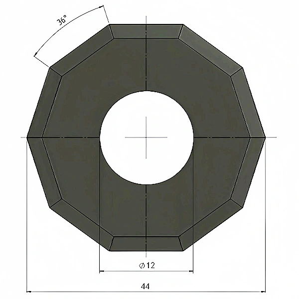 Designed for the Kuris Cutter 81566, this decagonal (10-sided) rotary blade has an outer diameter of 44 mm, an inner diameter of 12 mm, and a thickness of 1 mm. It has a maximum cutting depth of 5 mm and a cutting angle of 36°. It uses high-quality CT material to provide higher overcutting capacity and lower cutting force. It is suitable for aramid fiber, carbon fiber, felt, fiberglass and non-woven fabrics, etc. A variety of materials to meet various cutting needs.