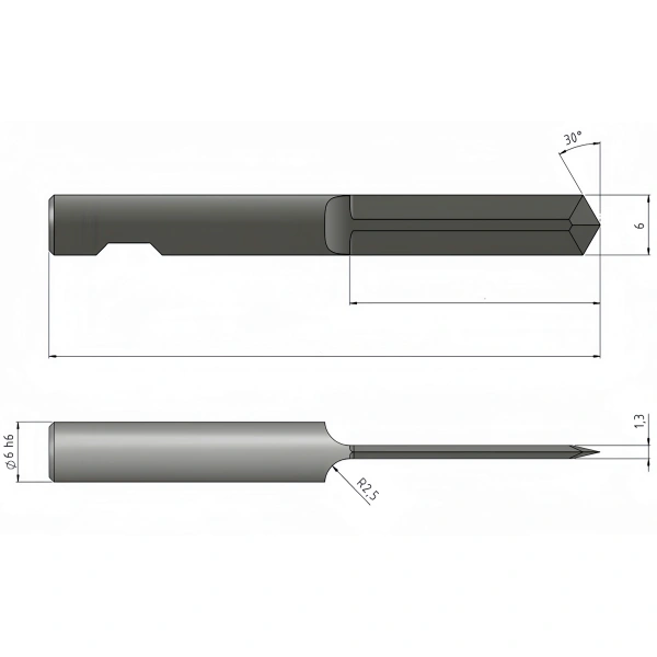 The Multicam 84-00193-BT-56226 blade has a 6.00mm diameter round shank, an overall length of 55.0mm and a cutting length of 25.0mm. With a 90° cutting angle and double edge geometry it is ideal for cutting cardboard, corrugated board, foam board, folding carton and rubber. Made from tungsten carbide, this blade is ideal for use with Multicam cutters.