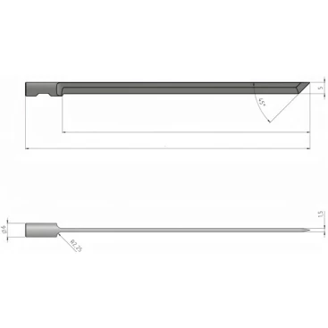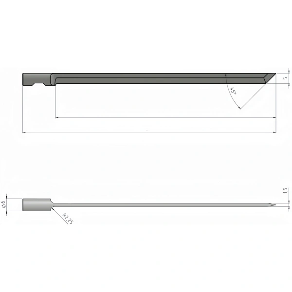 The C572110FP Flat Pointed Knife Blade is perfect for cutting insulation and fibrous materials. With a 110 mm cut length and 131 mm overall length, it features a 6 mm round shank and a single-edge flat point. Compatible with most knife tool machines, it is a direct replacement for BT-572110 and XK3110-OFP, ideal for materials up to 110 mm thick.