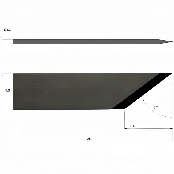 Multicam XZ0016 replacement oscillating blade, model 94-02466-910.306-L, blade angle 54°, maximum cutting depth 7.4mm, suitable for cutting a variety of materials such as PVC, foam board, canvas, magnetic film, cardboard, etc.