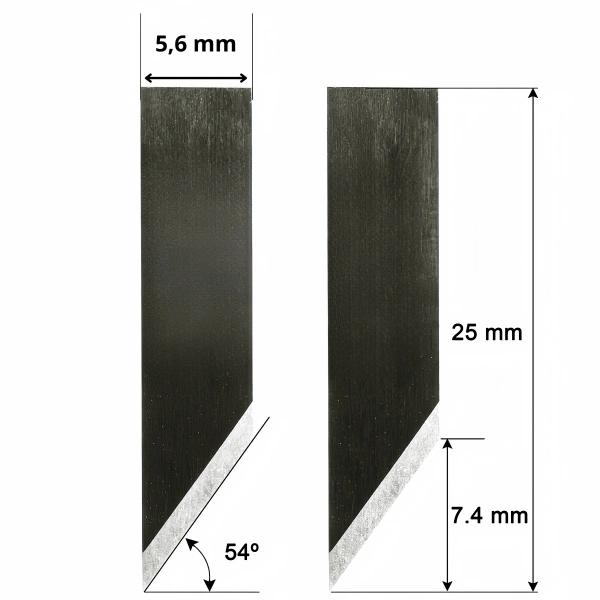 The Ronchini Blade RM-01039892 (Zund Z16 equivalent) is a durable cutting tool designed for Ronchini automatic cutting machines. With a thickness of 0.63mm and a maximum cutting depth of 7.4mm, this tungsten carbide blade is ideal for cutting soft materials such as canvas, self-adhesive vinyl and foam board.