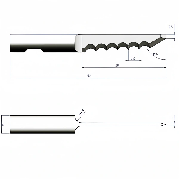 SUMMA 500-9833 / 500-0833 is a high-strength tungsten steel oscillating blade suitable for SUMMA CNC cutting equipment, designed for processing soft and thick materials. The blade is 52mm high, 1.0mm thick, with a Ø6mm round shank welding interface (Weldon), and the maximum cutting depth is 25mm.
