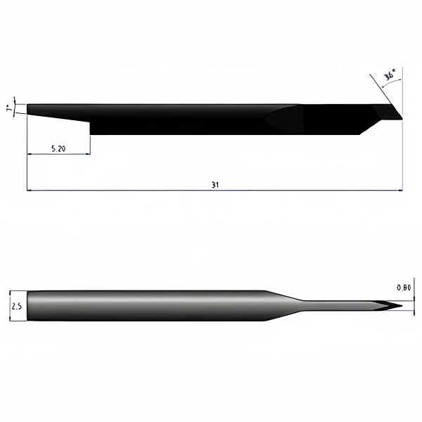 Summa 390-534 standard drag blade, suitable for Summa cutting machine. Blade height 31mm, thickness 2.5mm, angle 36°, maximum cutting depth 0.25mm. Suitable for cutting magnetic film, reflective film, self-adhesive film, polyester fabric and other thin film materials, precise and light cutting, smooth effect.