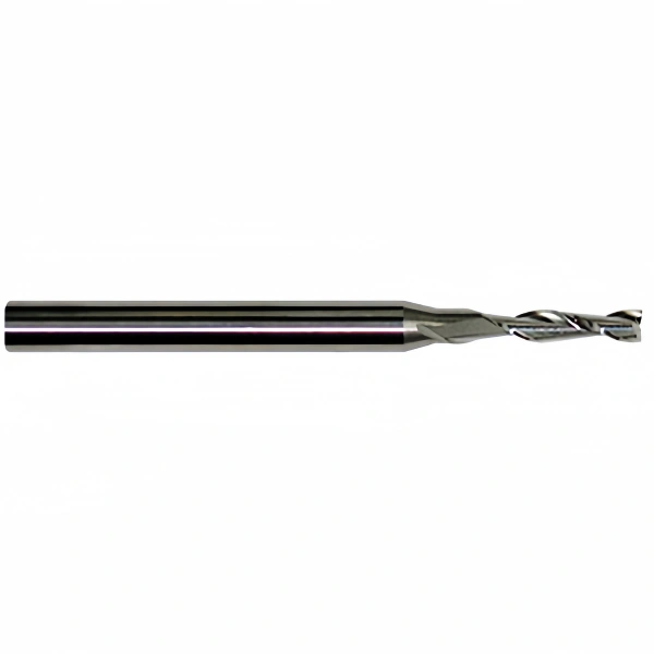 The Zund R22 Tungsten Carbide Up-Cut Milling Bit (Model 3910702) is an efficient cutting tool for materials such as acrylic and aluminum. The tool features a double cutting edge design, a 1/8″ shank diameter, a milling diameter of 2.0 mm, an overall length of 38 mm, a maximum milling depth of 9 mm, and a maximum speed of 80,000 rpm.