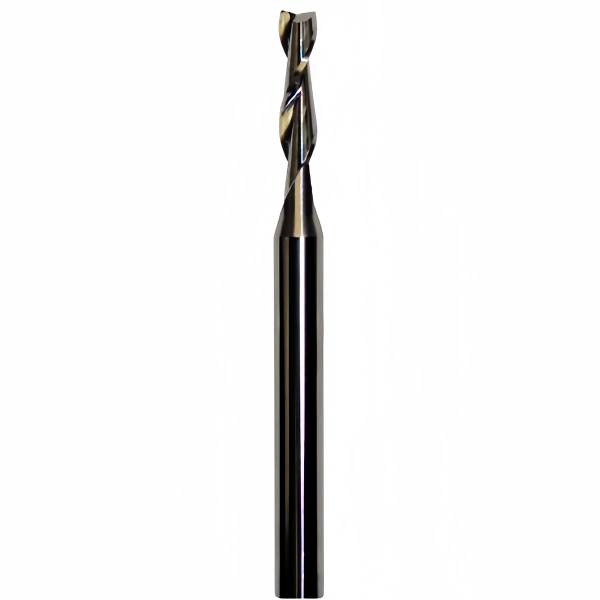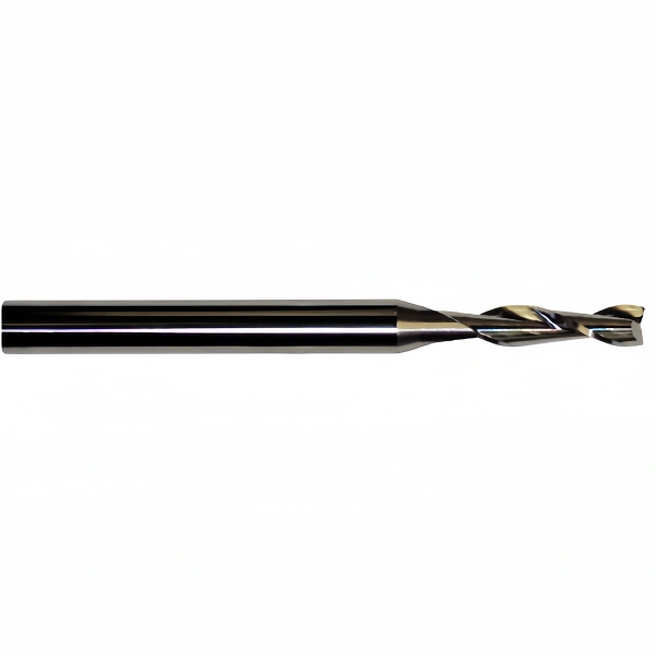 Zund R23 tungsten carbide up-cutting milling cutter and router bit (model 3910703) is designed for materials such as aluminum alloys and PMMA (acrylic). It has a 1/8″ shank diameter, a maximum speed of 80,000 rpm, a maximum milling depth of 9 mm, a double cutting edge design, a milling diameter of 2.4 mm, and a right-hand helix design.