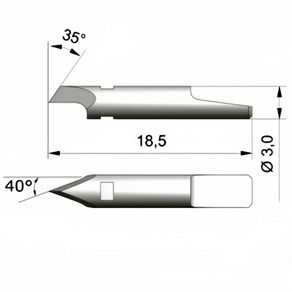 Zund Z1 tungsten steel drag circular blade (3910105) is designed for Zund cutters and is also compatible with Humantec and Lectra MFC cutters. The blade angle is 35°, the blade height is 18.5mm, the thickness is 3.0mm, the width is 3.0mm, and the maximum cutting depth is 1.0mm. It is suitable for kiss cutting of materials such as folding cartons, magnetic films, masking films and polycarbonate. The tungsten steel material ensures that the blade remains sharp for a long time and provides precise cutting results.