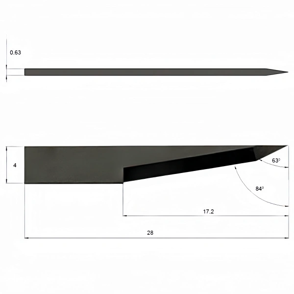This blade features a 0.63 mm flush interface and can cut a variety of materials, including corrugated cardboard, foam, magnetic film, rubber, and polyester fabric. With a maximum cutting depth of 17.2 mm, it is widely used in packaging, advertising, and industrial composite materials.