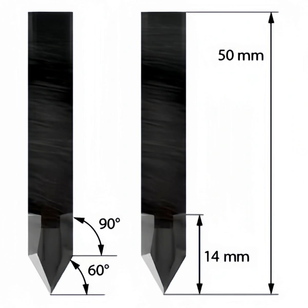 These flat-stock drag blades have a cutting angle of 60°and a maximum cutting depth of 14 mm. These blades are suitable for tarpaulin materials and carpet.etc