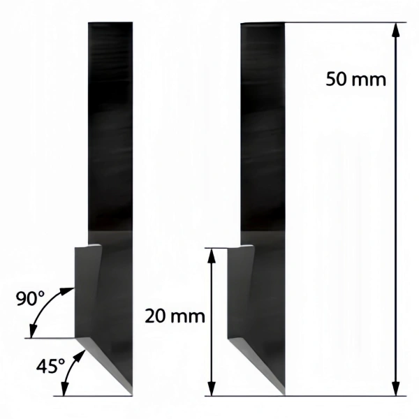 Zund S3 Z46 tungsten steel drag blade, suitable for Zund automatic cutting machine. Blade height 50mm, width 6mm, thickness 1.5mm, angle 45°/90°, maximum cutting depth up to 20mm. Suitable for cutting corrugated plastics, covering materials, foam boards, paper, polyester fabrics, PVC, etc., with precise cutting, wear-resistant and durable, suitable for various industrial needs.
