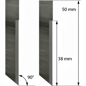 90° blade angle, blade size 50×8×1mm, maximum cutting depth 18.4mm. Suitable for Zünd, iEcho, Summa and other platform cutting machines, suitable for cutting corrugated cardboard, foam board and other materials. Compatible with V-Cut tool system, suitable for a variety of industrial cutting applications.