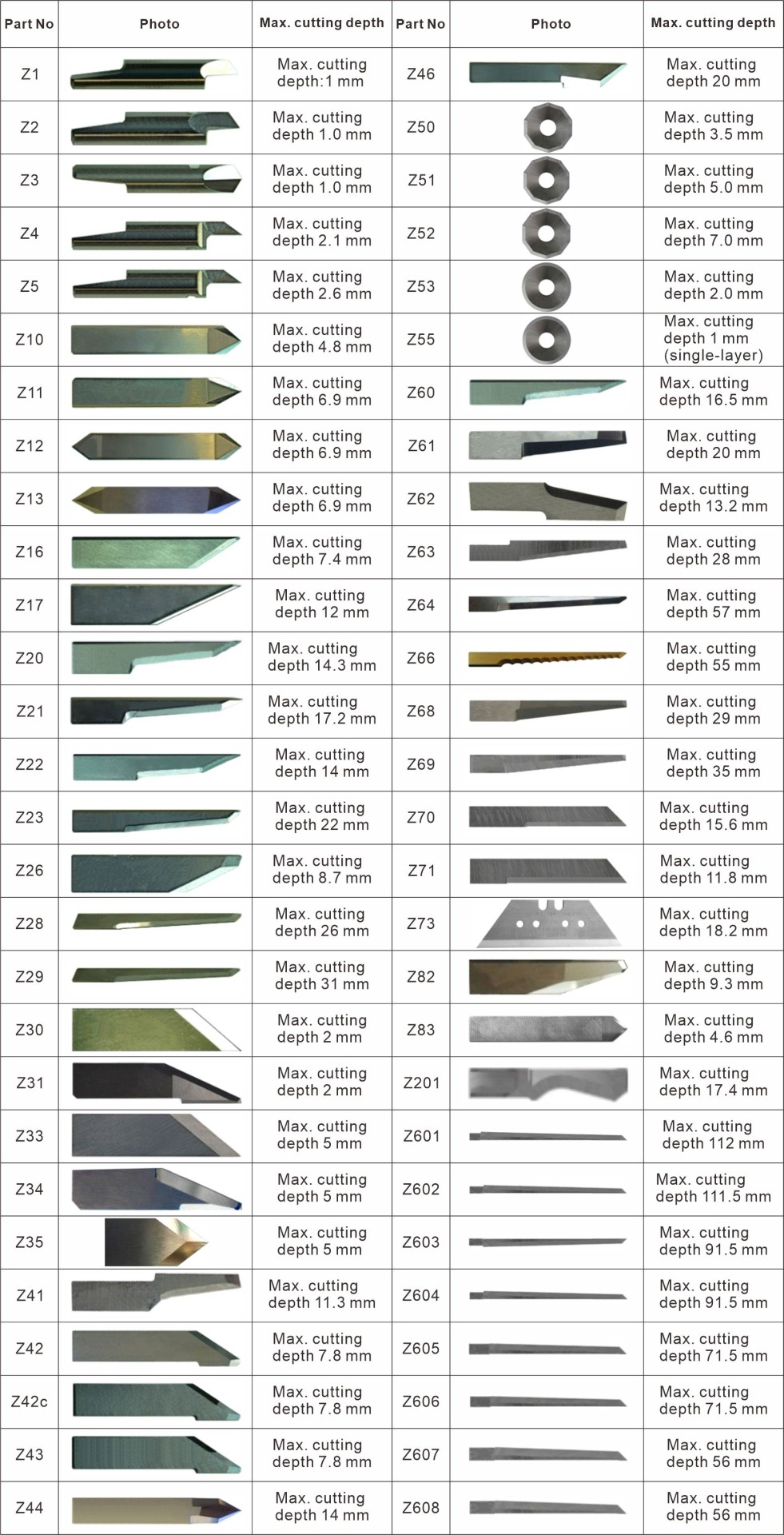 Including sound vibrating knives, round knives, drag knives, double-edged knives, milling cutters, trapezoidal knives, round handle blades, etc.